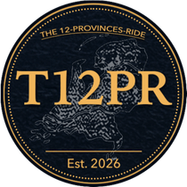 Logo met de tekst 'T12PR', 'The 12 Province Ride', 'Est. 2026', en 'Ride 3 Zeeland' op een donkere achtergrond.