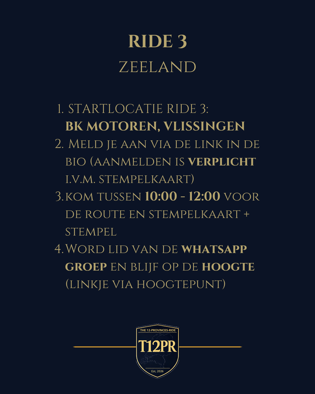 Welkom bij de derde editie van The 12 Province Ride. Super leuk dat je mee gaat rijden! Voor ride 3 gaan we naar het mooie Zeeland.